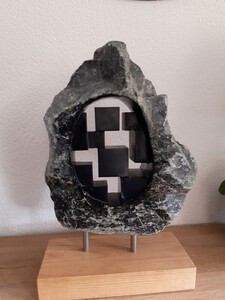 2015Serpentijn op eiken houten blok